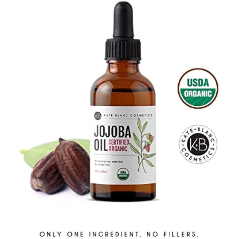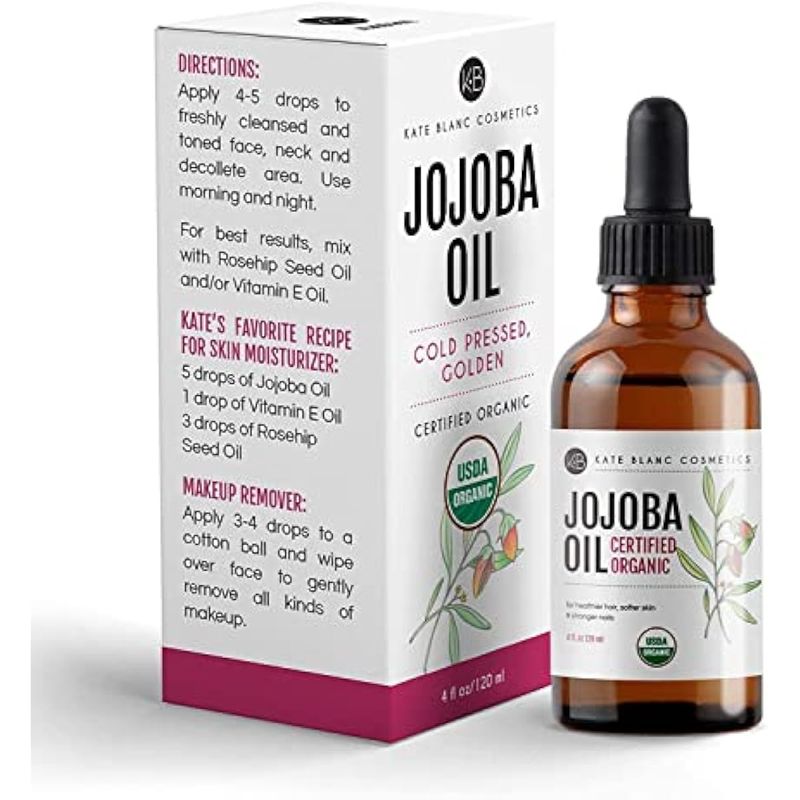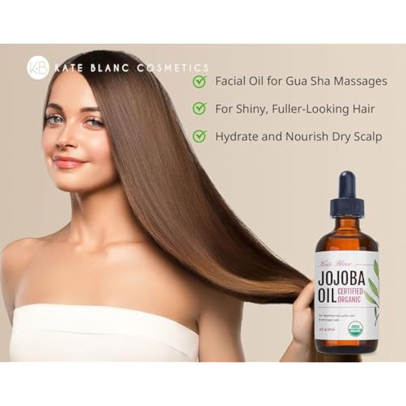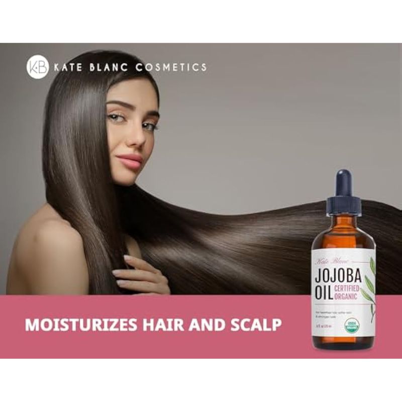 ACEITE DE JOJOBA ORGÁNICO PARA CABELLO: El aceite de jojoba orgánico certificado por USDA de Kate Blanc Aceite de Jojoba es 100 puro, prensado en frío, sin refinar y sin hexano. Este aceite ligero ayuda a suavizar las hebras secas y añade un brillo de aspecto saludable sin dejar residuos grasos. Comúnmente utilizado como un aceite natural para el cabello seco o quebradizo, apoya un cuero cabelludo nutrido y domina la apariencia de encrespamiento y vuelos.