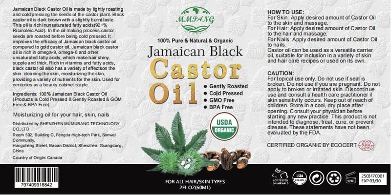 Aceite de ricino negro jamaicano orgánico USDA - 100% puro, prensado en frío, sin hexano y vegano,