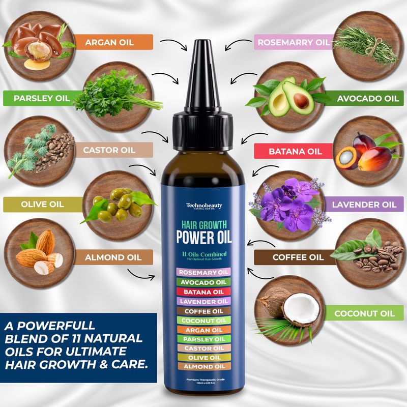 Aceite de romero con aceite de ricino negro, batana, lavanda, café, coco, argán, aguacate, oliva,