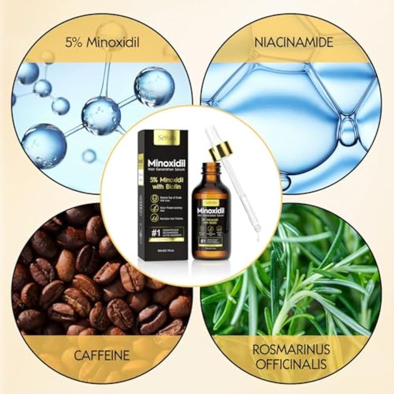 Potente fórmula para el crecimiento del cabello: Formulado con 5 de minoxidil, biotina y una mezcla de vitaminas esenciales y antioxidantes, este suero se dirige al adelgazamiento de los folículos pilosos para promover un cabello más denso y lleno. Clínicamente probado y recomendado por dermatólogos, el minoxidil al 5 es eficaz para reducir la pérdida de cabello y estimular el nuevo crecimiento.