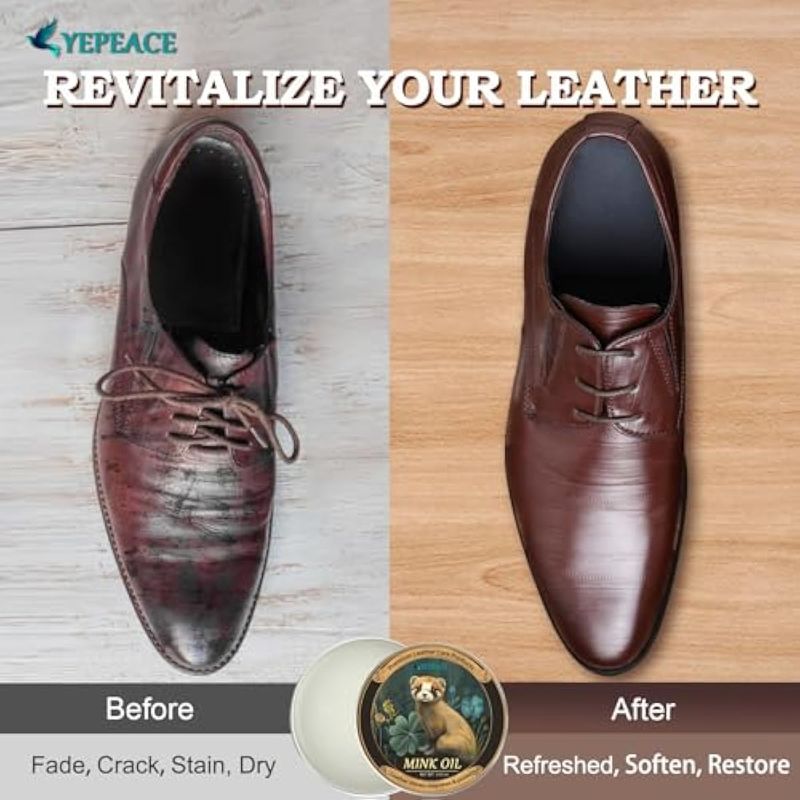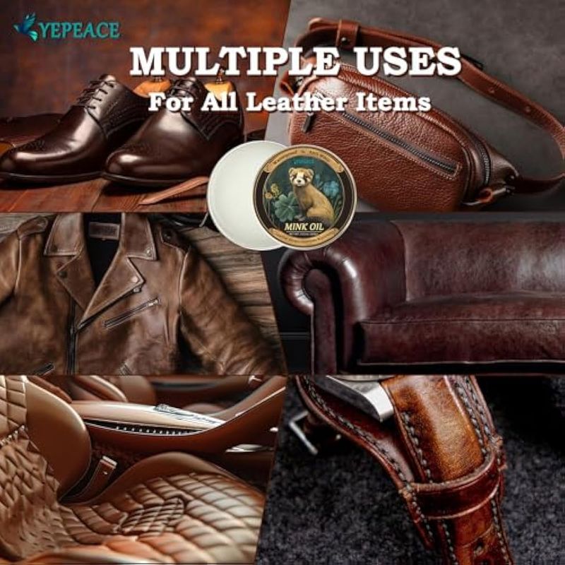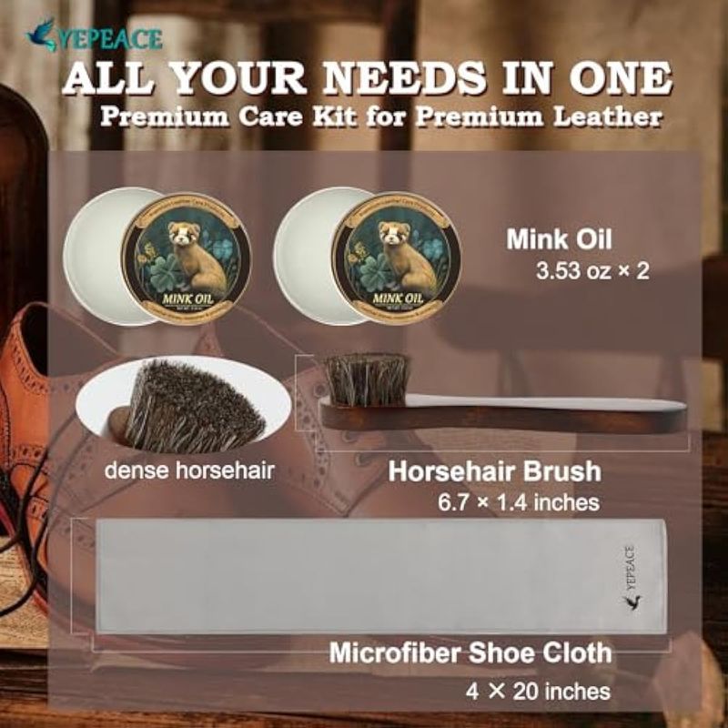 Yepeace El kit de cuidado de aceite de visón de 3 piezas ofrece un cuidado completo del cuero, incluyendo limpieza, hidratación y pulido, asegurando un brillo duradero y protección para tus artículos de cuero. Incluye un frasco de 3.52 onzas de aceite de visón, un cepillo de crin de caballo y un paño de pulido de microfibra.