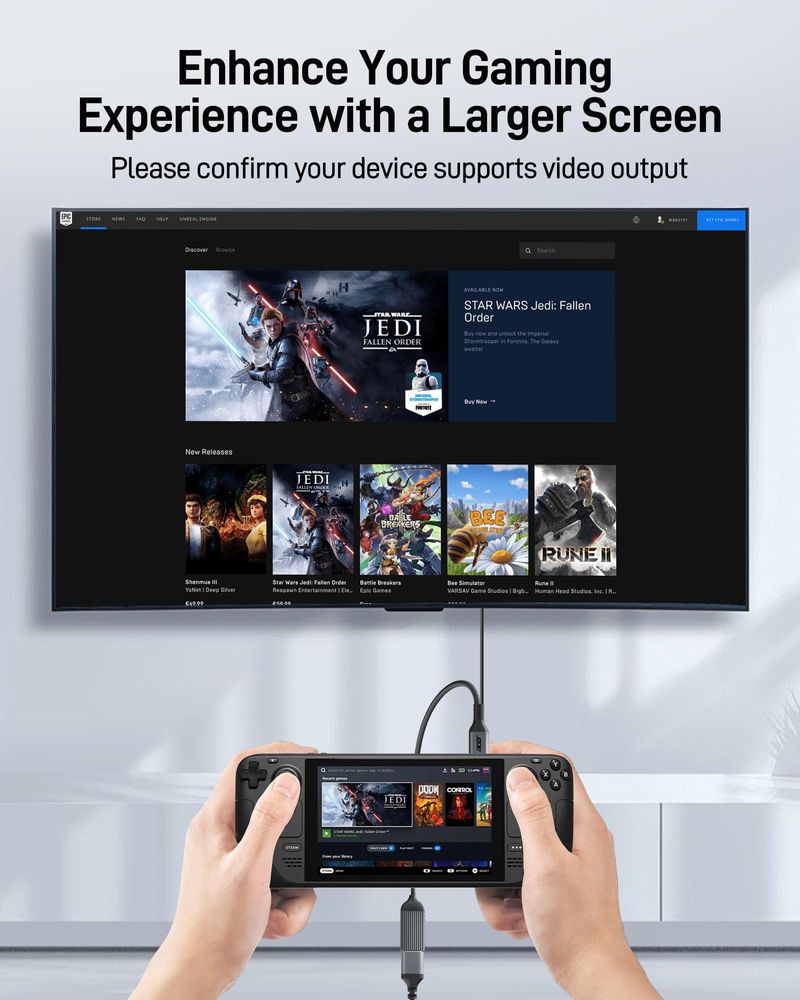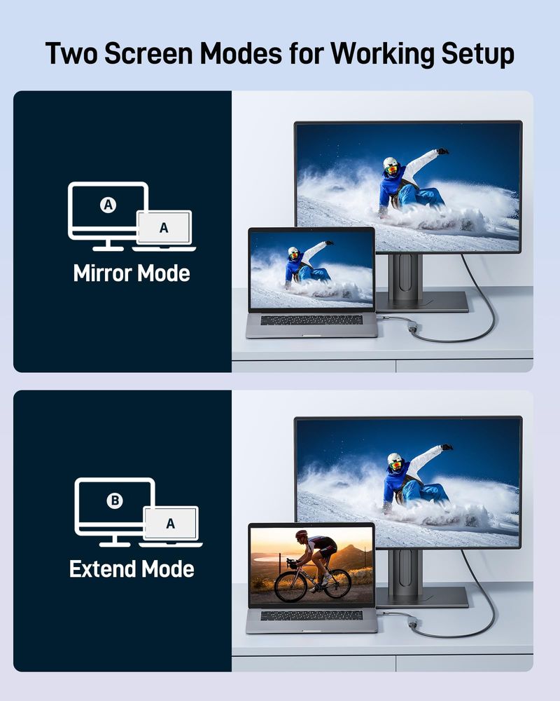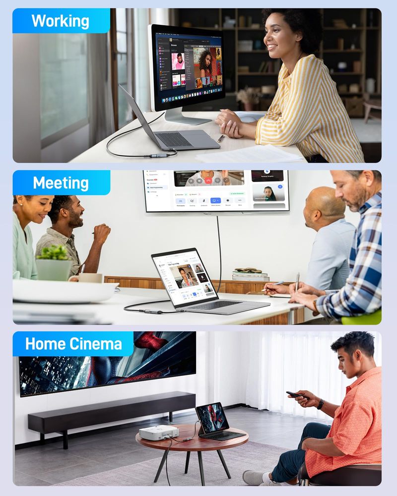 Mejora la eficiencia del trabajo: refleja o amplía tu escritorio para aumentar la productividad. Conéctese a un monitor LED 4K o un televisor UHD. Satisface todas las necesidades, desde el uso diario de la oficina hasta la edición profesional de video y fotos. Nota: La transmisión es unidireccional, solo desde el dispositivo host USB-C a pantallas HDMI.