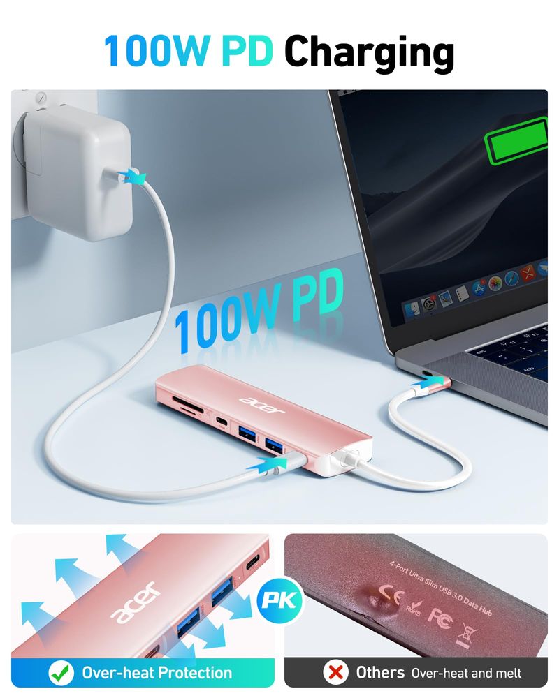 Acer Concentrador USB, adaptador multipuerto USB C a HDMI 7 en 1, 2 puertos USB 3.1 GEN1 y 5Gbps