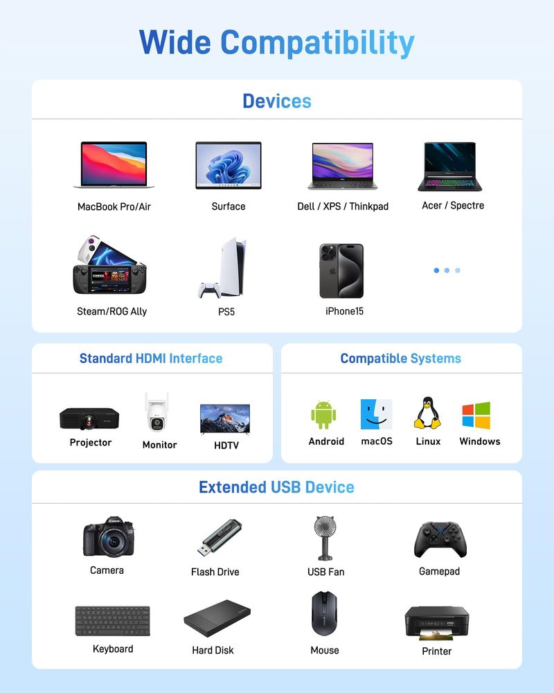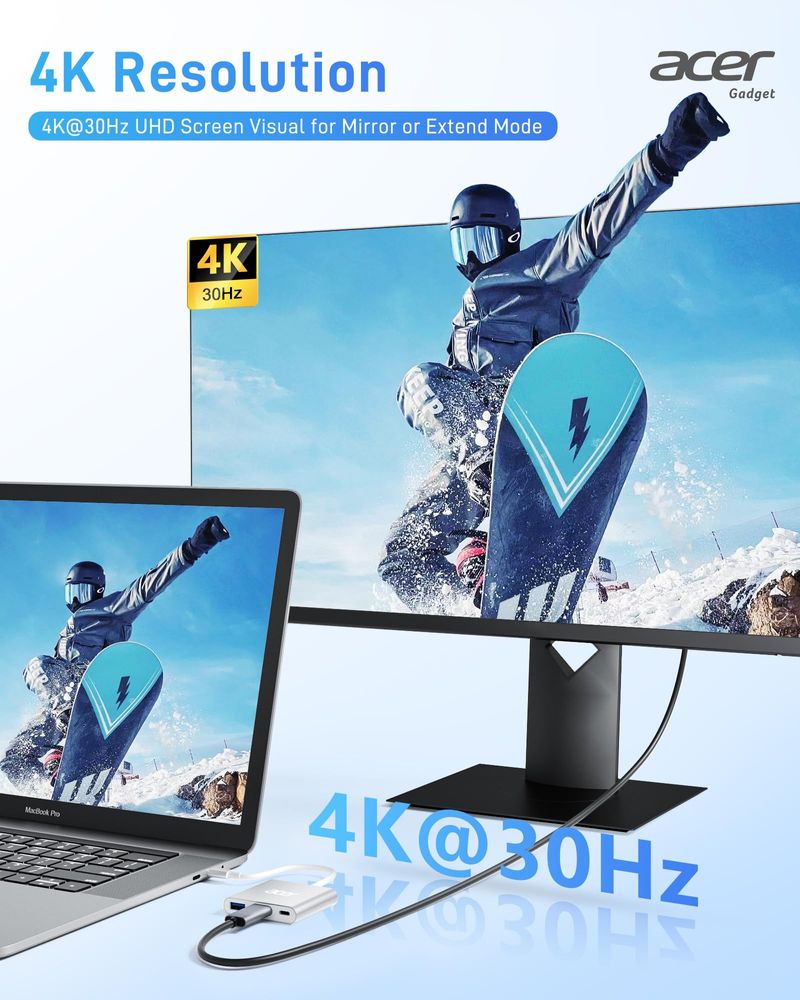Acer Concentrador USB C, adaptador USB C a HDMI de 100 W PD y USB 3.0 puerto HDMI a USBC Dongle