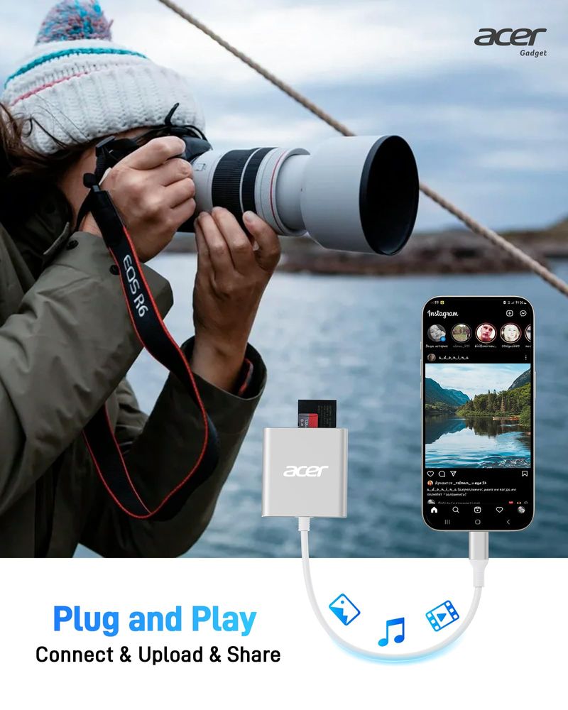 Transferencia de datos SD 4.0: El lector de tarjetas SD USB-C Acer admite las últimas tarjetas de memoria UHS-II, ofreciendo velocidades asombrosas de hasta 312 MBs. Disfrute de transferencias de datos tres veces más rápido que los lectores de tarjetas UHS-I normales, perfectos para películas 4K, fotos de alta resolución y Vlogs de video.