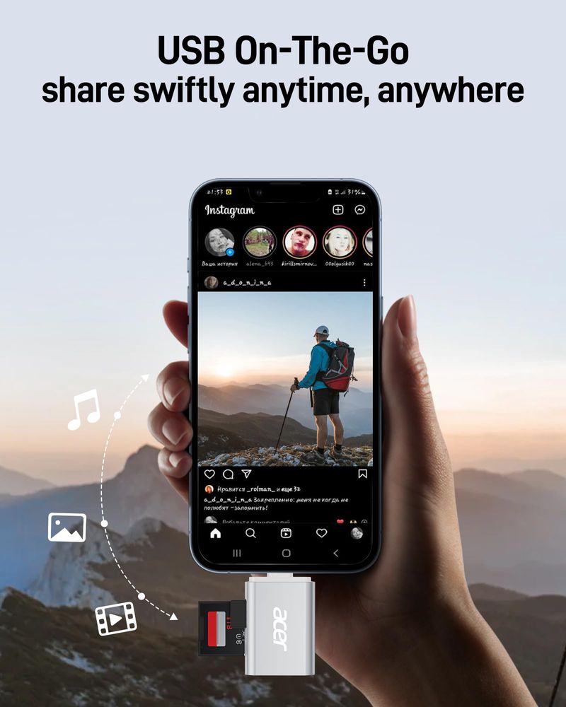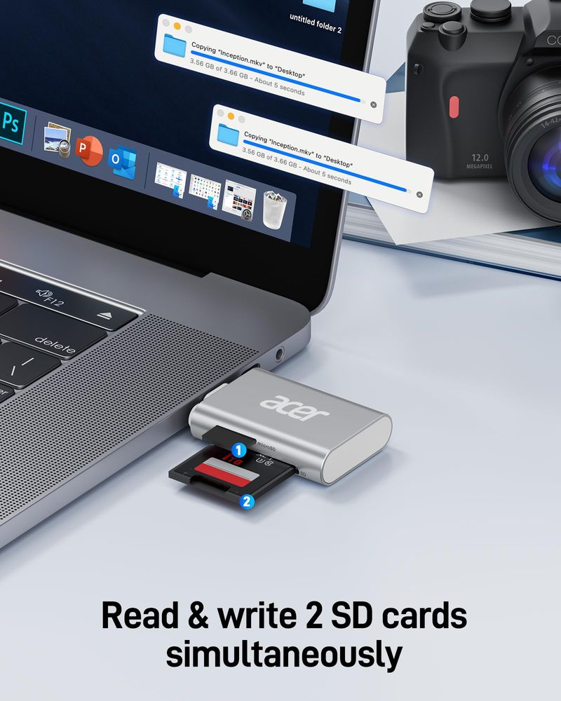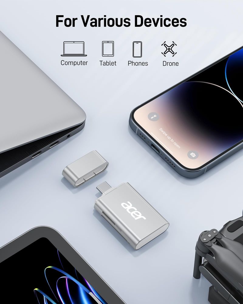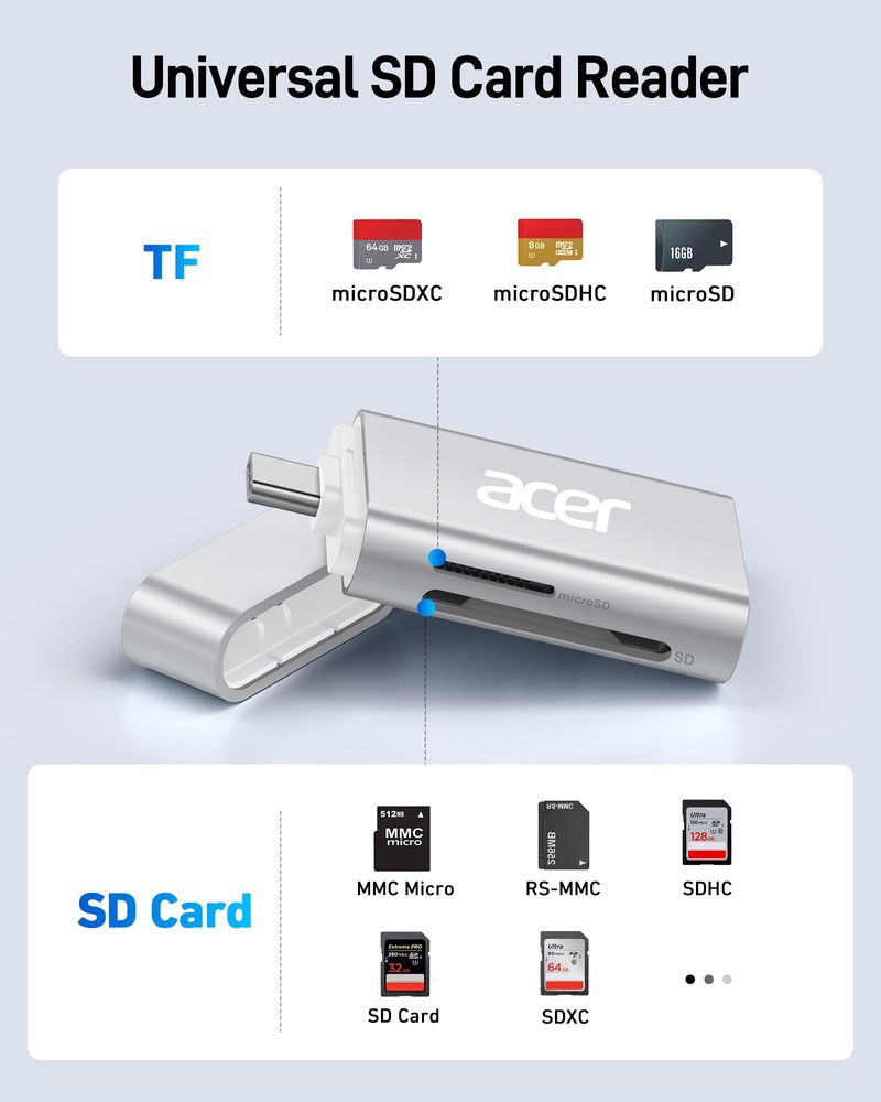 INFORMÁTICAALMACENAMIENTOTARJETA DE MEMORIAAcer Lector de tarjetas USB C SD 4.0, lector de tarjetas micro SD UHS-II 2 en 1 a adaptador tipo C