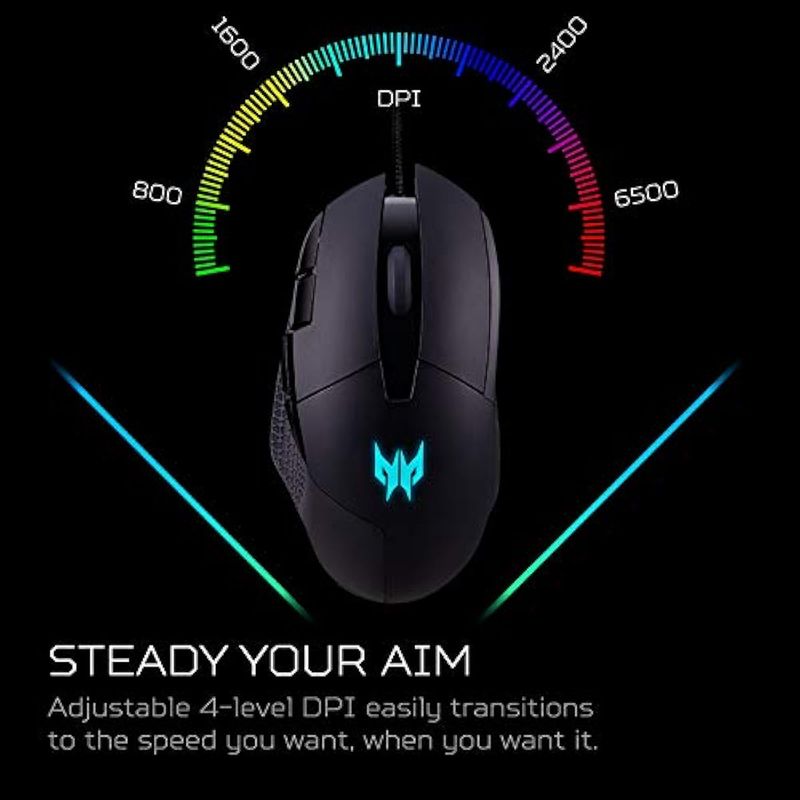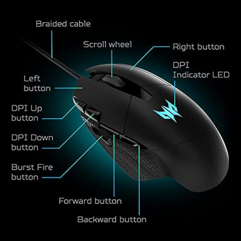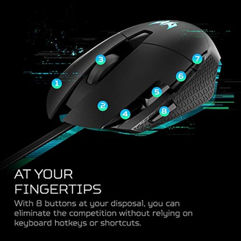 Acer Predator Cestus 315 - Mouse para juegos con sensor PixArt, DPI ajustable y 8 botones incluyendo