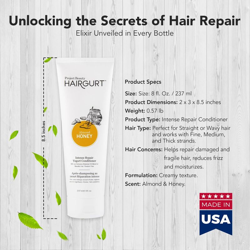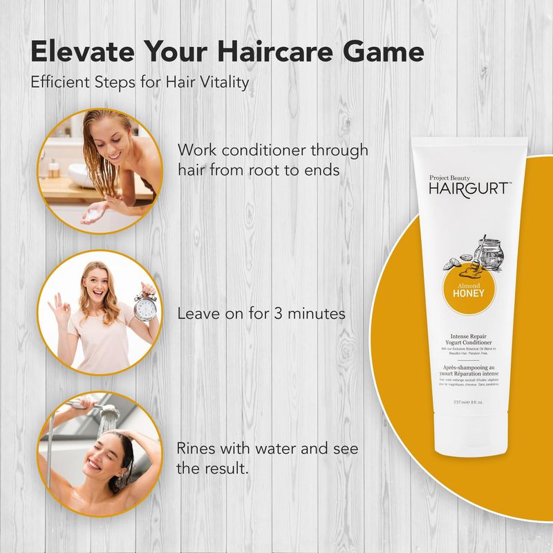 Acondicionador de yogur reparador intenso de miel de almendra, humedad profunda para cabello seco y