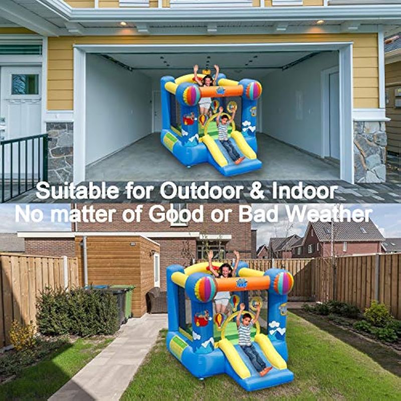 BEBES Y NIÑOSJUGUETESACTION AIR Bounce House, Inflatable Hot Air Balloon Bouncer with Air Blower, Jumping Bouncy Castle