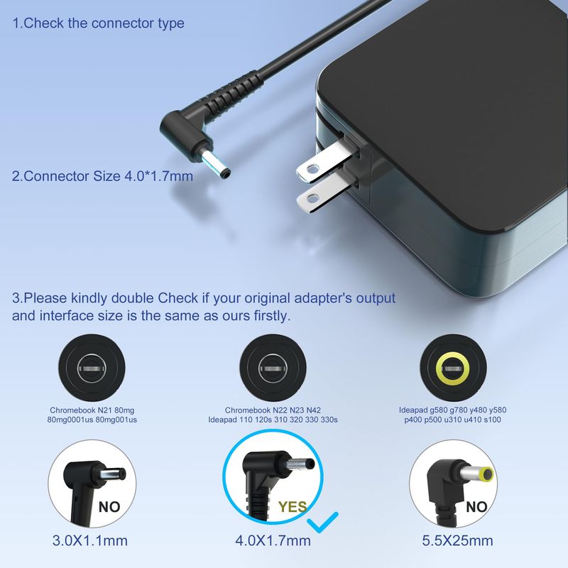 Adaptador de CA de 65 W, 20 V, 3.25 A, cargador para laptop Lenovo IdeaPad 110 130 310 320 330 510