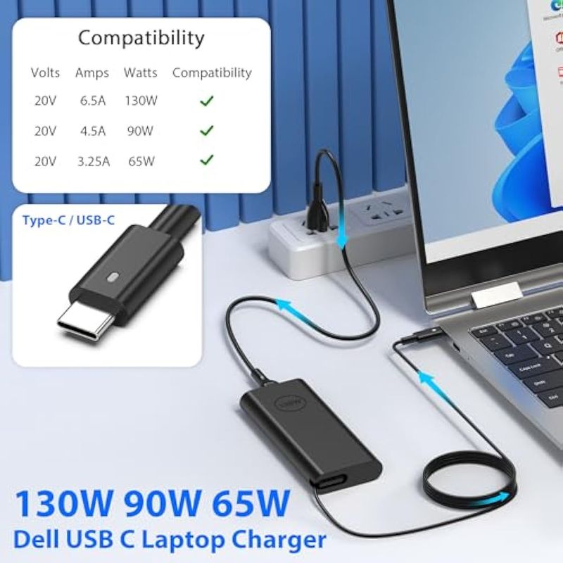Adaptador de CA de cargador de computadora portátil USB tipo C de 130 W para Dell XPS 15 17 2 en 1