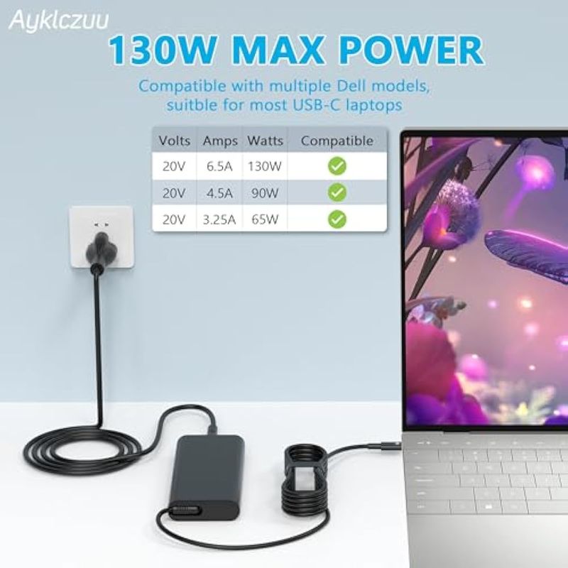Adaptador de CA de cargador de laptop USB C tipo C de 130 W para Dell XPS 15 17 2 en 1 9575 9500