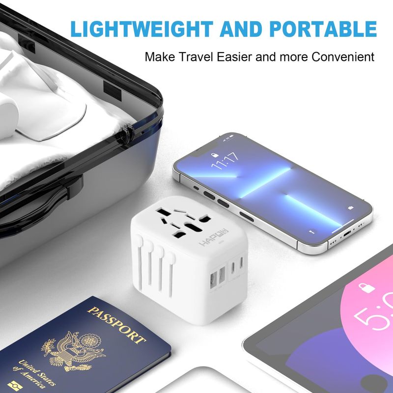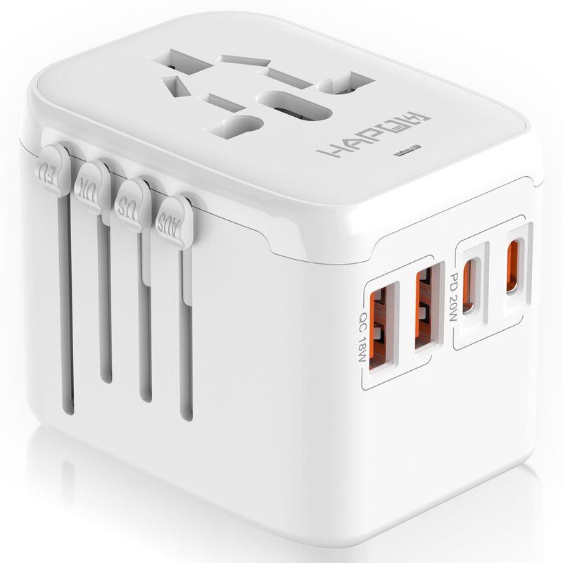 Adaptador de viaje universal, adaptador de corriente internacional PD20W, 2 USB-C y 2 USB-A cargador