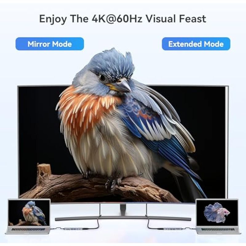 Salida de video 4K vívida: adaptador multipuerto USB C refleja o extiende tu pantalla con puerto HDMI USB C hub y transmite directamente video 4K UHD @ 30Hz o Full HD 1080P a HDTV, monitor o proyector