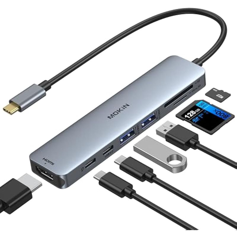 ADAPTADOR HDMI USB C HUB PARA MACBOOK PRO 2021/2020/2019/2018/2017, MOKIN 6 EN 1 MAC DONGLE USB C HUB ADAPTADOR MULTIPUERTO CON HDMI 4K, LECTOR DE TARJETAS SD/TF Y 3 PUERTOS USB A