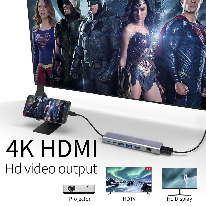 ???Hub USB C 9 en 1?: la estación de acoplamiento para laptop tiene 1 HDMI 4K a 30 Hz, 1 puerto RJ45 Gigabit, 1 puerto de datos USB-C, 3 puertos USB 3.0, 1 puerto de carga USB-C 100 W PD y lector de tarjetas SDTF.