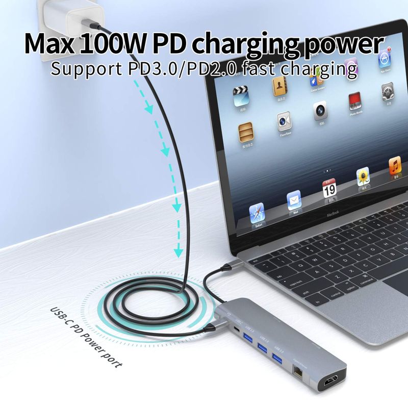 ADAPTADOR MULTIPUERTO USB C, ESTACIóN DE ACOPLAMIENTO 9 EN 1, LAPTOP CON HDMI, ETHERNET, 100 W PD, 3 PUERTOS USB 3.0, PUERTO DE DATOS USB-C, LECTOR DE TARJETAS SD/TF, COMPATIBLE CON MACBOOK