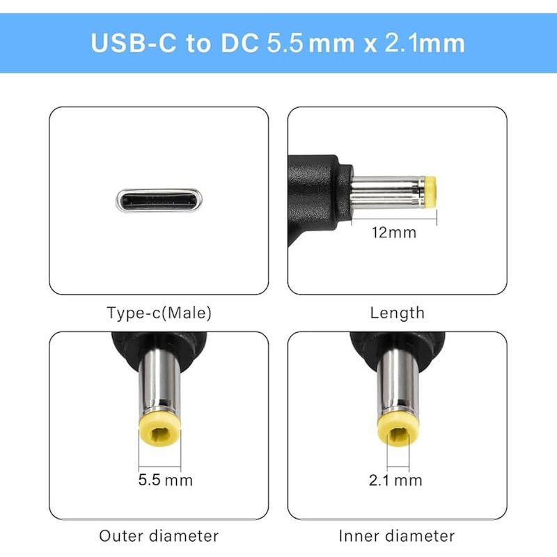 INFORMÁTICANOTEBOOKSAdaptador USB C a CC de 0.217 x 0.083 in, adaptador de CC USB C de 5 V 12 V 20 V USB C DC de 0.217 x
