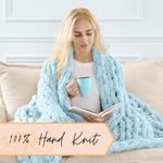 HOGARBLANQUERIACUBRECAMAAdyrescia Manta de punto grueso, 100 % tejida a mano con hilo de felpilla jumbo (50 x 60 pulgadas,