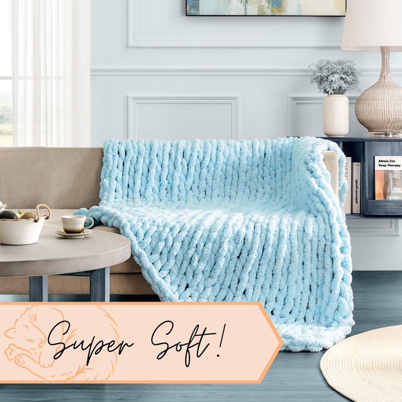 Adyrescia Manta de punto grueso, 100 % tejida a mano con hilo de felpilla jumbo (50 x 60 pulgadas,