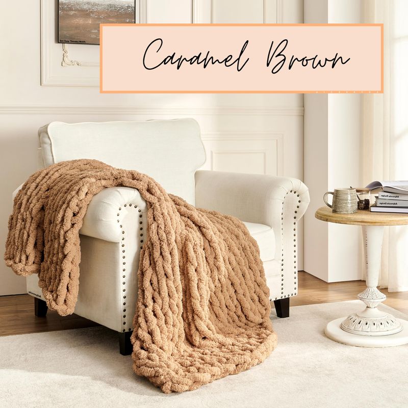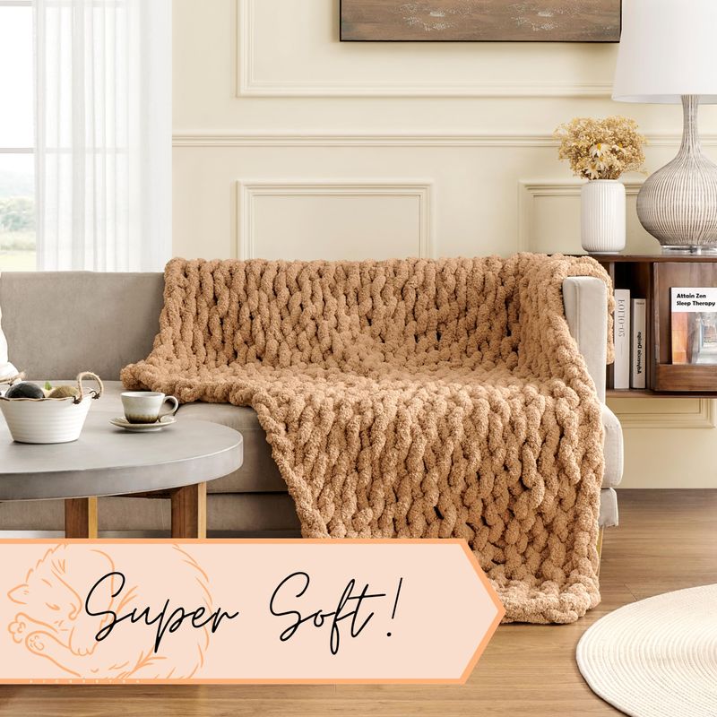 Adyrescia Manta de punto grueso, 100 % tejida a mano con hilo de felpilla jumbo (50 x 60 pulgadas,