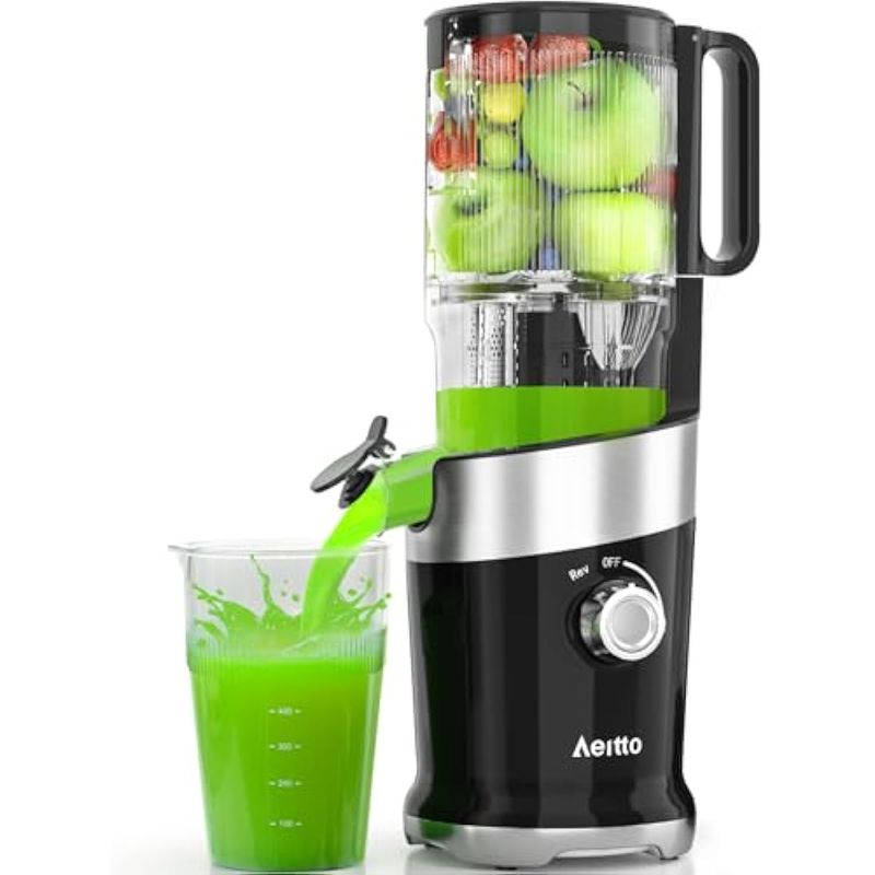 AEITTO - EXPRIMIDOR DE PRENSA EN FRíO CON CANAL DE ALIMENTACIóN GRANDE DE 4.9 PULGADAS, EXPRIMIDOR MASTICADOR QUE SE ADAPTA A VERDURAS Y FRUTAS ENTERAS, EXPRIMIDOR LENTO DE ALIMENTACIóN AUTOMáTICA,