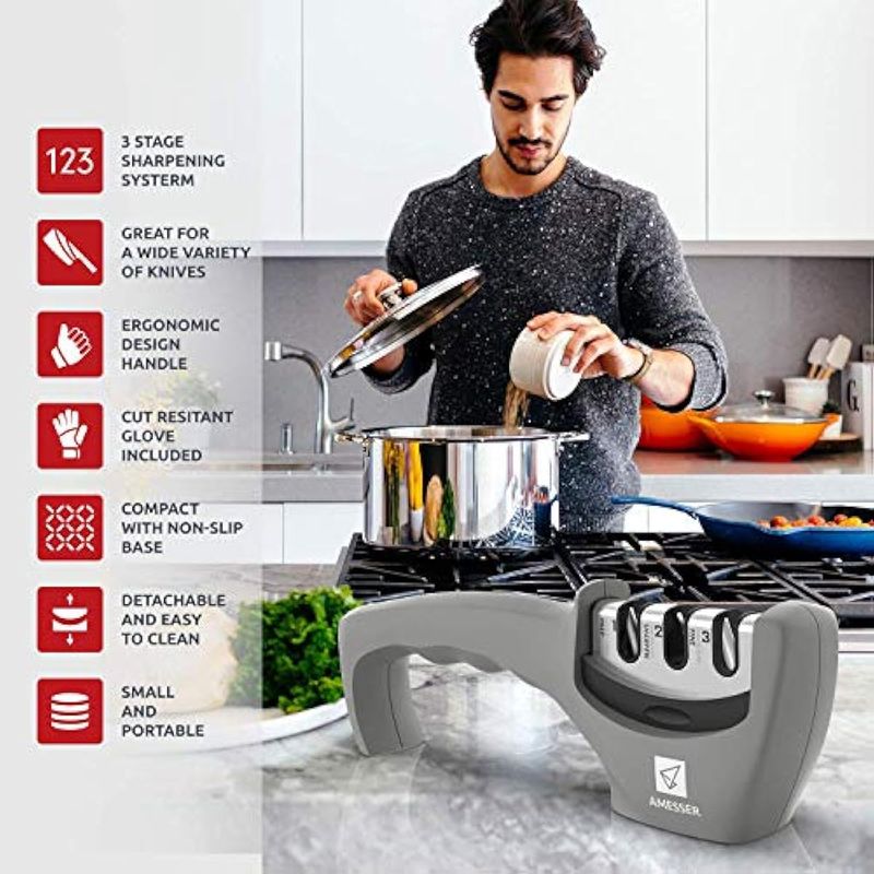 HOGARBAZARUTENSILIOS DE COCINAAfilador de cuchillos de cocina, herramienta de afilado de cuchillos de 3 etapas, afila los