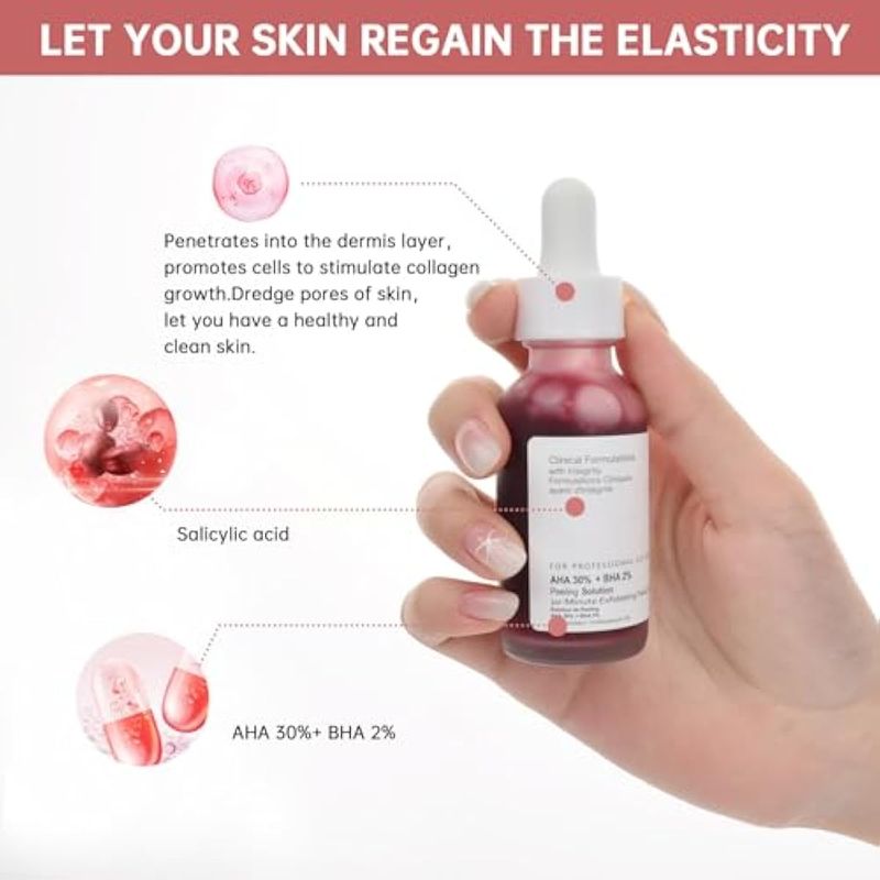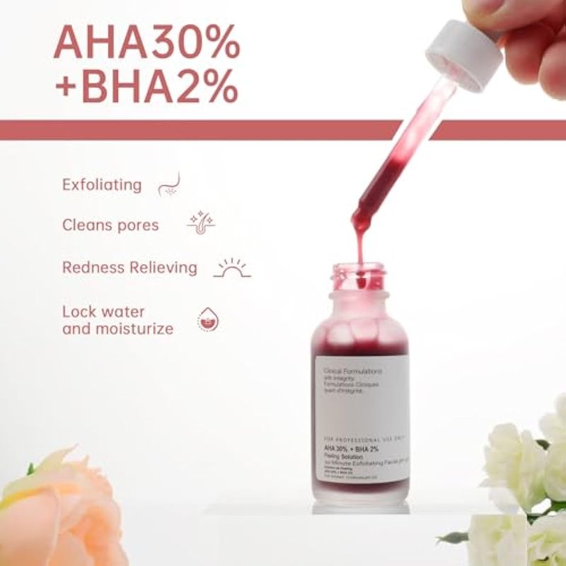 AHA 30% + BHA 2% Solución de peeling 1.0 fl oz/1oz, suero facial exfoliante, exfoliación química
