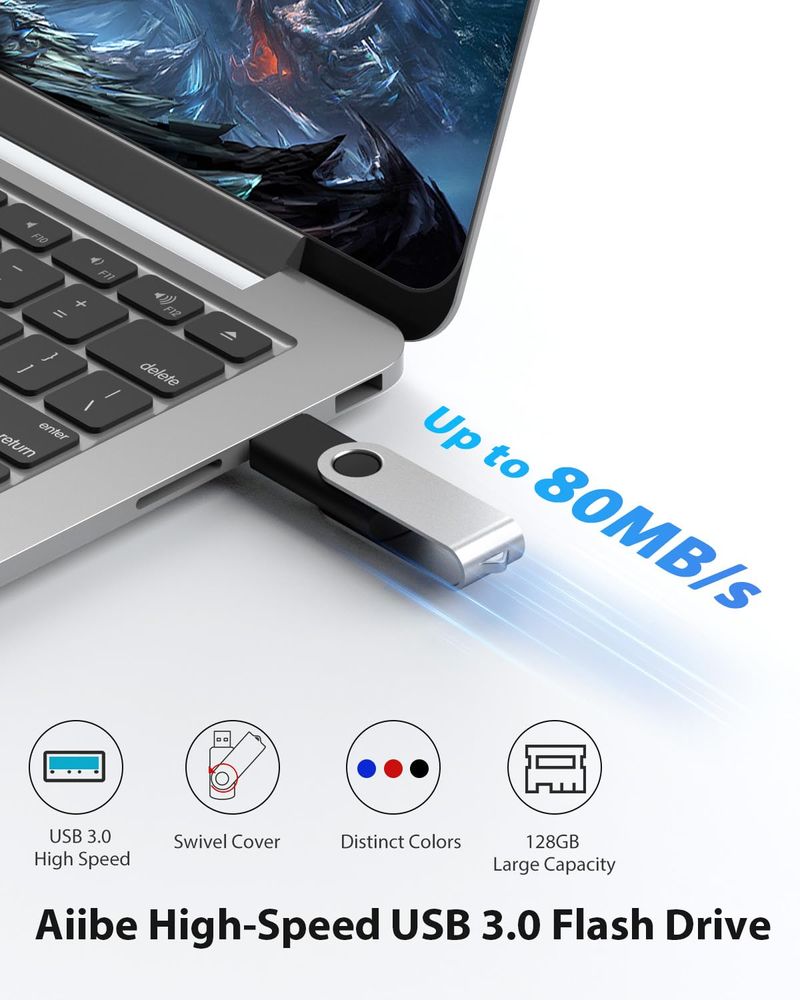 Aiibe Unidad flash USB 3.0 de 64 GB, paquete de 5 unidades flash USB de 64 GB, unidad USB 3.0 a