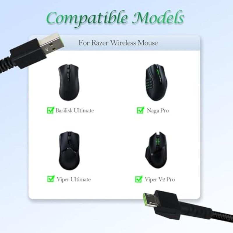 Aiivioll Cable de carga USB para mouse inalámbrico de 5.9 ft para Razer Viper Ultimate, Basilisk