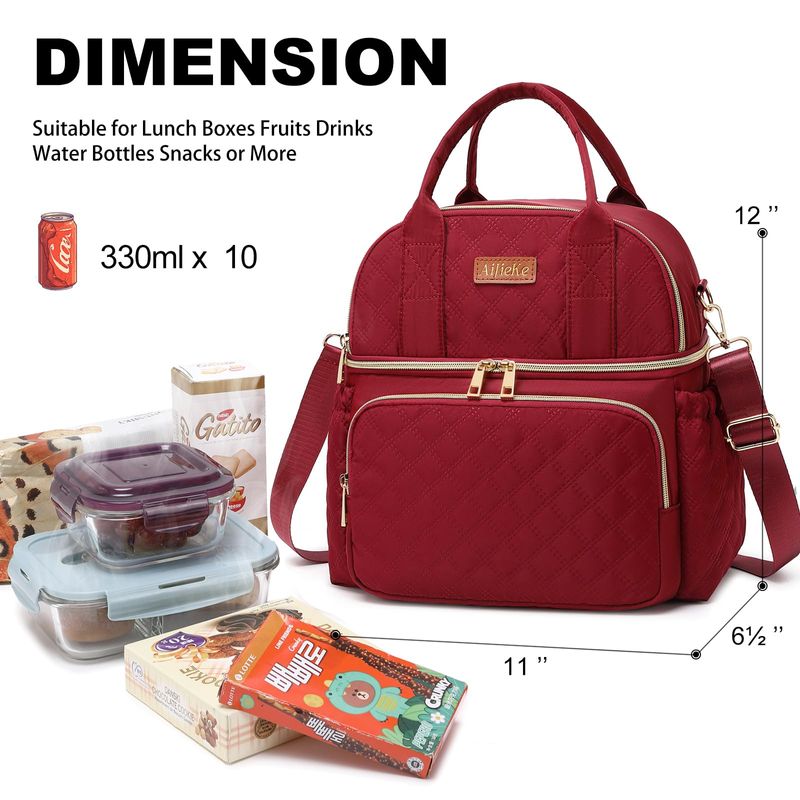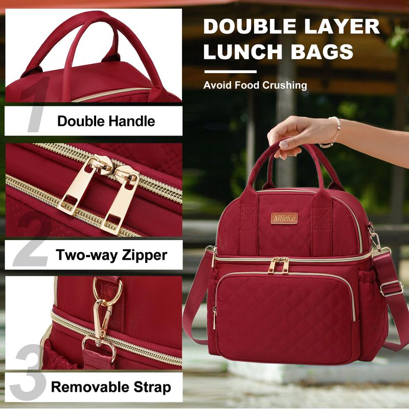 AIJIEKE Bolsa de almuerzo para hombres y mujeres, lonchera de doble compartimento, bolsas de
