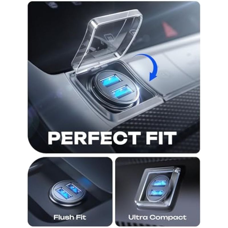 Tamaño compacto, ajuste al bordo: el cuerpo pequeño del tamaño del pulgar 1.7 pulgadas de largo x 0.9 pulgadas de ancho se adapta a la mayoría de los encendedores de cigarrillos de automóviles y apenas sobresale más allá del borde de la salida, proporcionando un aspecto menos desordenado. Es nuestro cargador de coche más pequeño hasta la fecha: ligero y altamente portátil, por lo que puedes llevarlo a todas partes.