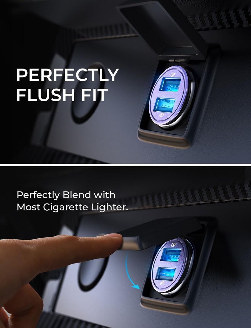 Tamaño compacto, ajuste al bordo: el cuerpo pequeño del tamaño del pulgar 1.7 pulgadas de largo x 0.9 pulgadas de ancho se adapta a la mayoría de los encendedores de cigarrillos de automóviles y apenas sobresale más allá del borde de la salida, proporcionando un aspecto menos desordenado. Es nuestro cargador de coche más pequeño hasta la fecha: ligero y altamente portátil, por lo que puedes llevarlo a todas partes.