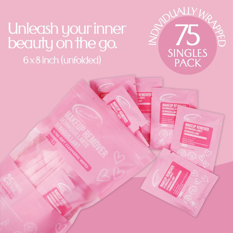 Air Jungles Toallitas desmaquillantes individuales, 25 unidades (paquete de 3), extra grandes de 6 x