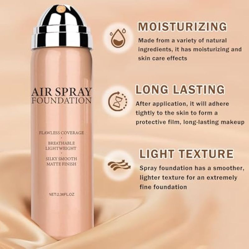 Spray sedoso: la base de aerógrafo rocía una fina niebla que se adapta mejor a la piel y cubre de manera más uniforme; es ligera y no se siente pesada en la piel, adecuada para todos los tipos de piel