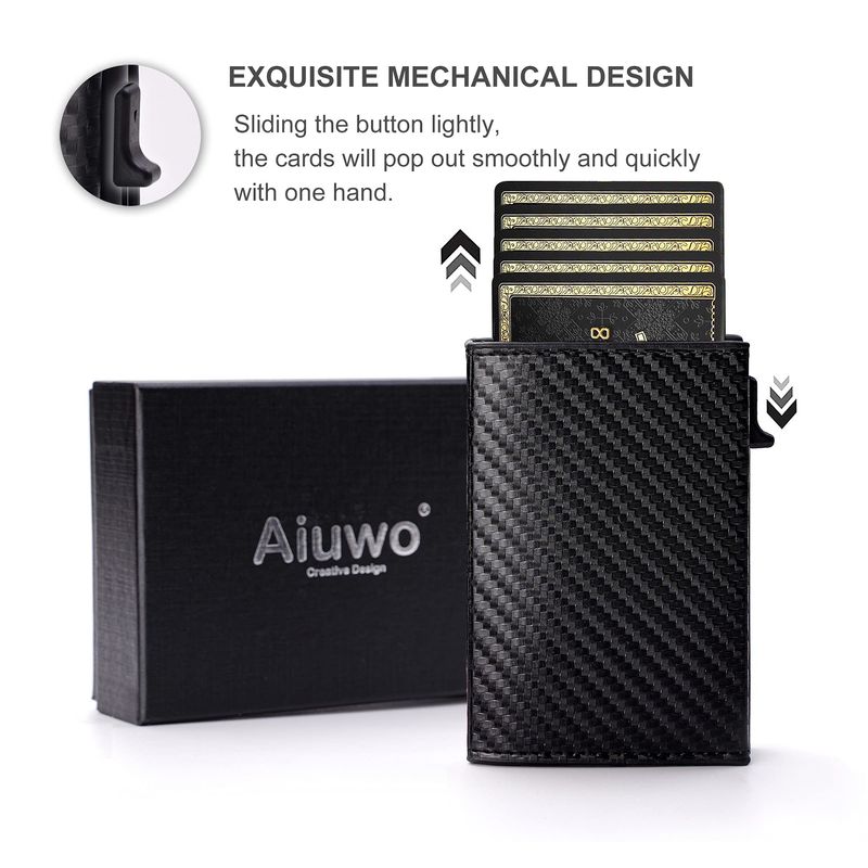 Cierre magnético: el tarjetero está hecho de caja de aleación de aluminio de alta calidad + cuero de alta calidad, con 4 imanes fuertes, mejor que el tarjetero normal, por lo que el tarjetero no se abra cuando está cerrado. La cartera ultrafina está diseñada para caber directamente en el bolsillo para un fácil transporte, y la cartera de cuero se puede utilizar para almacenar dinero en efectivo.