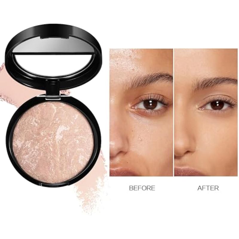 AKARY Baked Powder Foundation, Oil Control Correcting Powder Foundation, Buildable Light to Medium