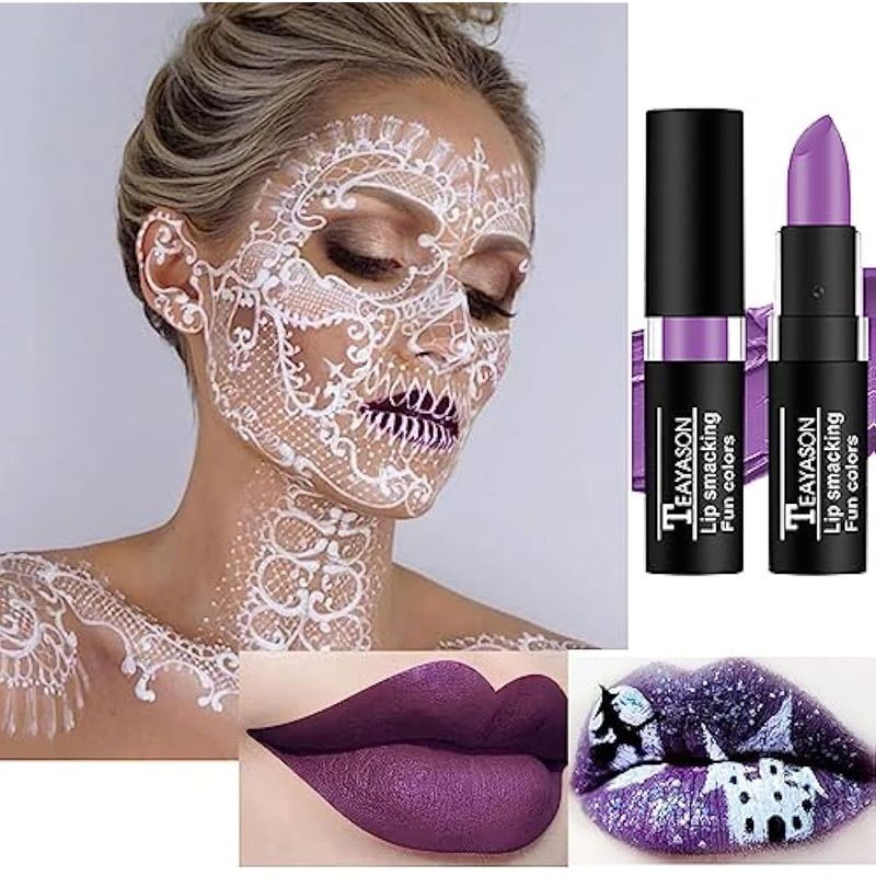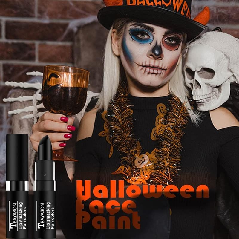 AKARY Pintura facial negra de ojo negro, resistente al agua, larga duración, brillo de labios,