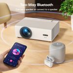 AKIYO Proyector inteligente con WiFi y Bluetooth, mini portátil de 600 ANSI, 50% de zoom, nativo
