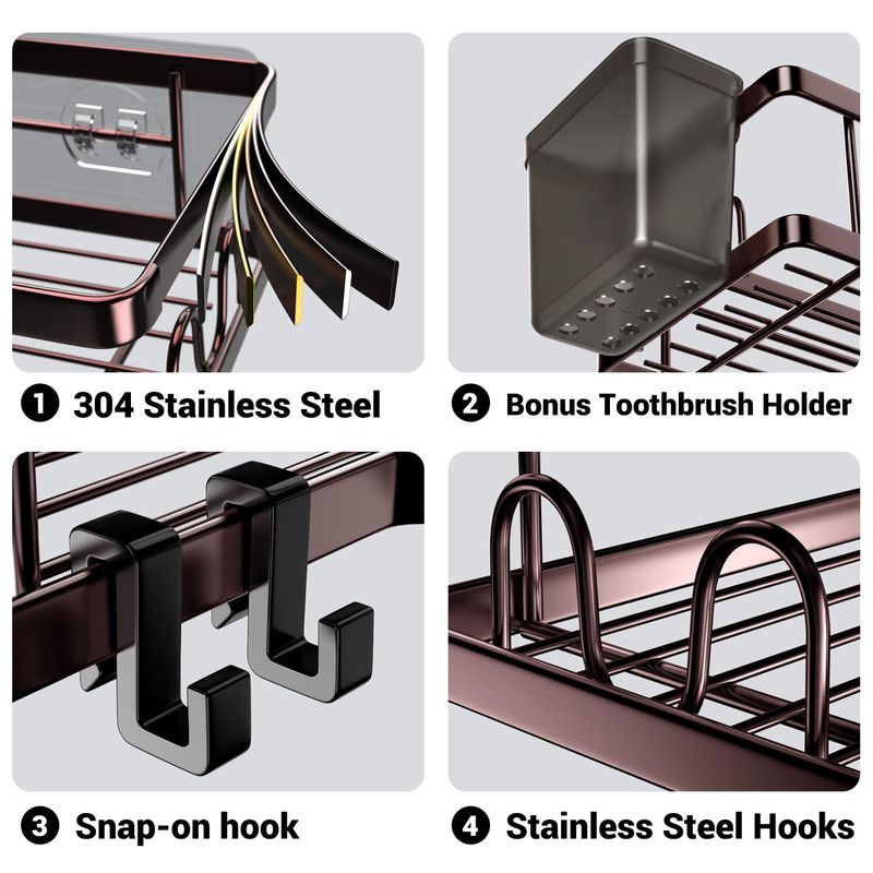 HOGARBAZARDECORACIONAKTECKE Organizador de esquina para ducha, paquete de 2 estantes organizadores adhesivos de ducha,