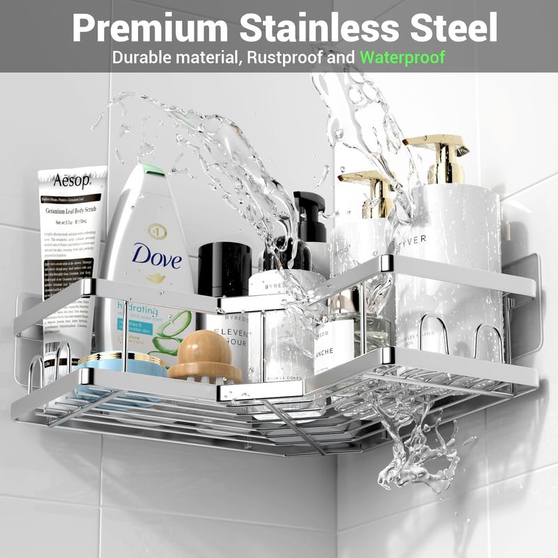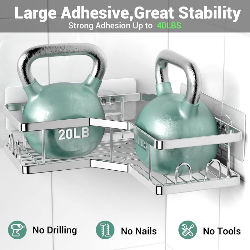 HOGARBAZARDECORACIONAKTECKE Organizador de esquina para ducha, paquete de 2 estantes organizadores adhesivos de ducha,