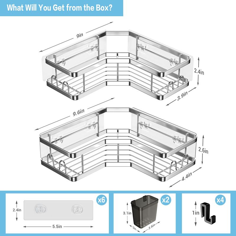 HOGARBAZARDECORACIONAKTECKE Organizador de esquina para ducha, paquete de 2 estantes organizadores adhesivos de ducha,