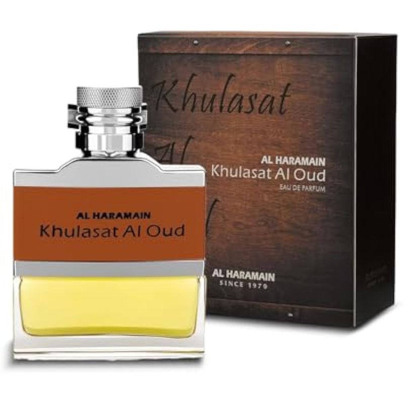 AL HARAMAIN KHULASAT AL OUD - COLONIA PARA HOMBRE - PERFUME áRABE DE LARGA DURACIóN PARA HOMBRES - EAU DE PARFUM FRAGANCIA DE CUERO CON ROSA, áMBAR Y ALMIZCLE - PERFUME áRABE - ESPRAY EDP DE 3.3 OZ