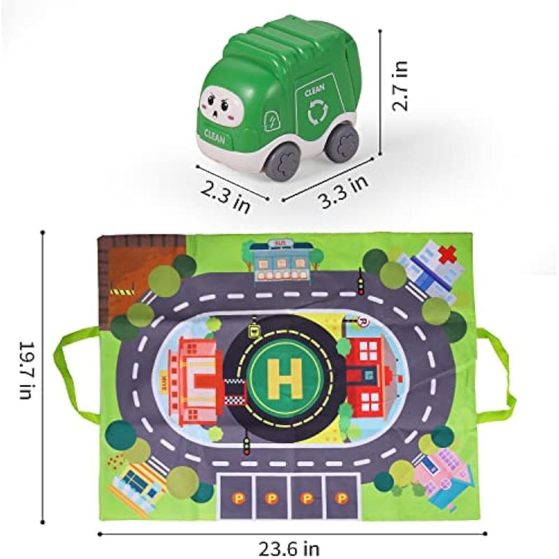 ALASOU 8 piezas de juguetes de coche de camión para bebés con tapete de juego/bolsa de