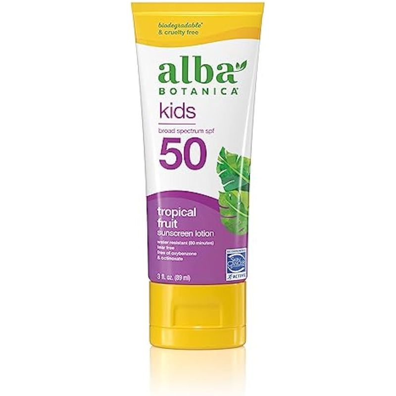 Protector solar para niños: incluye un protector solar de 3 fl. oz. tube of Alba Botanica Kids - Loción de protección solar de frutas tropicales, SPF 50