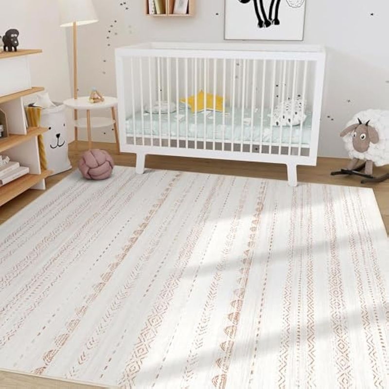 Alfombra de área para sala de estar: 8 x 10 pies, grande, suave, lavable a máquina, estilo bohemio,