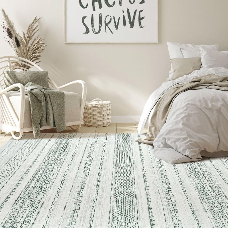 Alfombra de área para sala de estar: 8 x 10 pies, grande, suave, lavable a máquina, estilo bohemio,