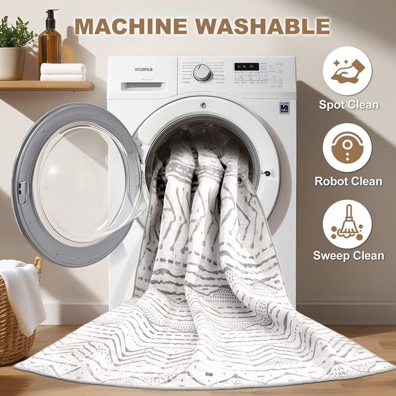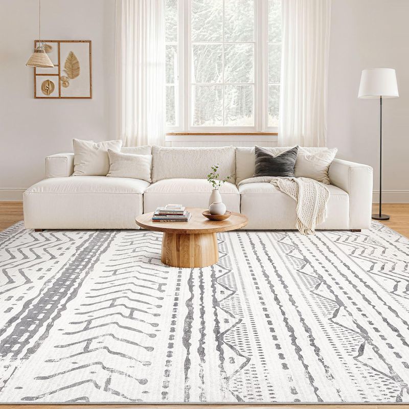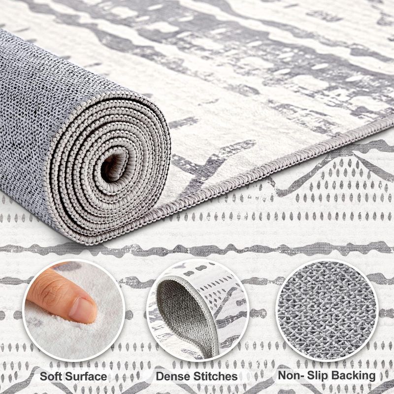 Alfombra de área para sala de estar: 8 x 10 pies, grande, suave, lavable a máquina, estilo bohemio,