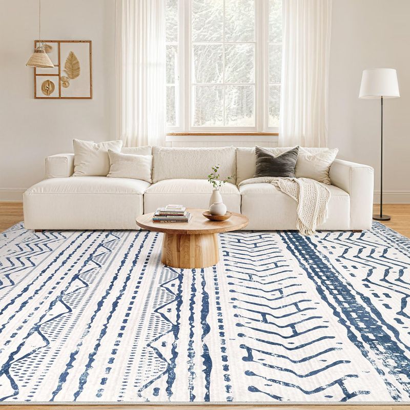 Alfombra de área para sala de estar: 8 x 10 pies, grande, suave, lavable a máquina, estilo bohemio,