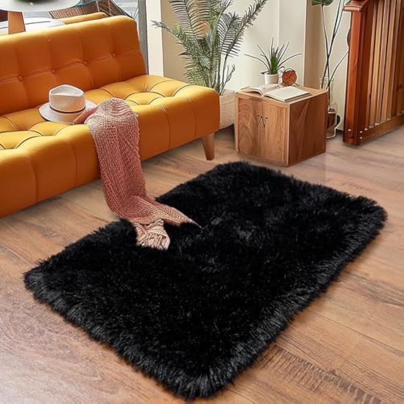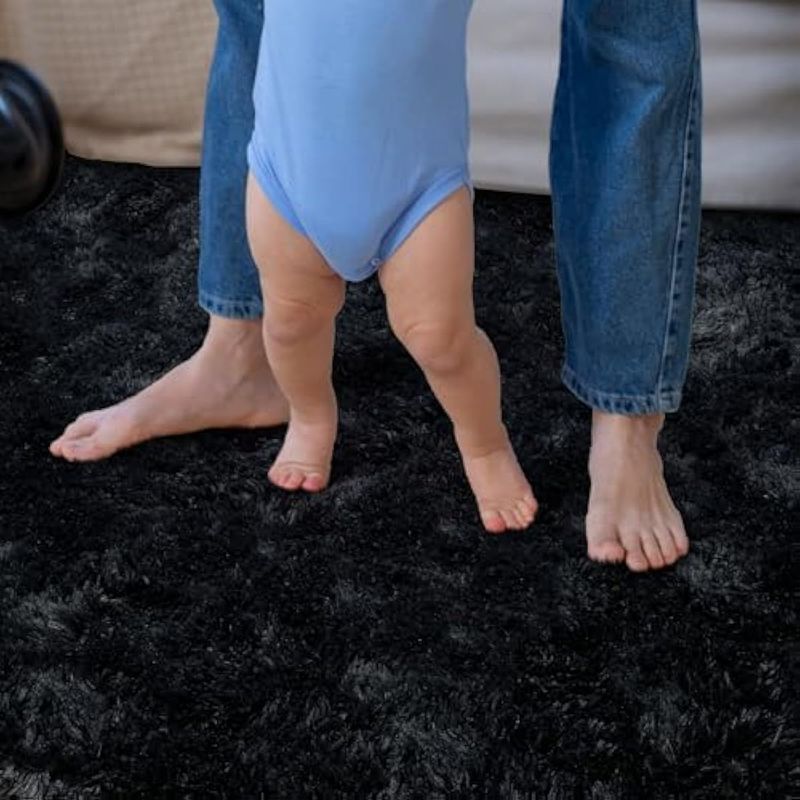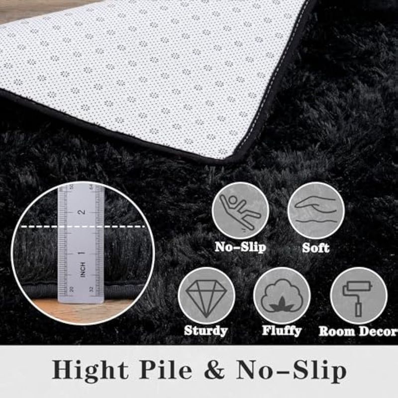 HOGARBAZARDECORACIONAlfombra súper esponjosa para dormitorio, alfombra moderna de pelo largo, color negro, alfombra